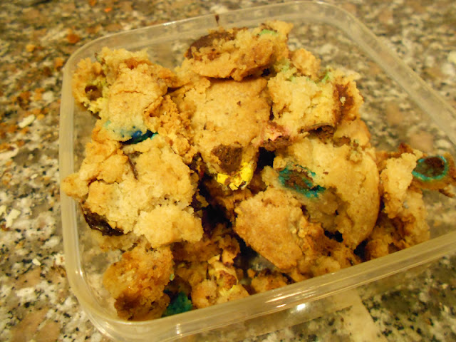 -300 gram chocolade (M&M's, in stukjes gebroken repen en/of alle andere chocola die in stukjes kan)